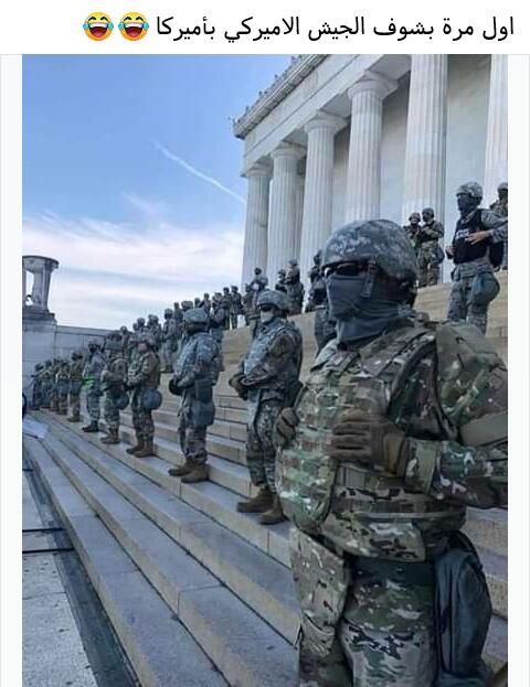 وقام نشطاء مواقع التواصل الاجتماعي بنشر مجموعة من صور القوات الامريكية التي نزلت الى الشوارع لقمع المحتجين وسخروا فيها من الجيش الامريكي الذي يُرى داخل اراضي اميركا لاول مرة منذ زمن طويل.