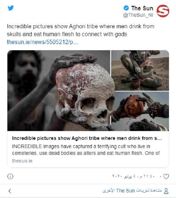 وبالإضافة إلى تناول لحم البشر، يشرب أفراد القبيلة أيضا من جماجم بشرية ويمضغون رؤوس الحيوانات الحية.