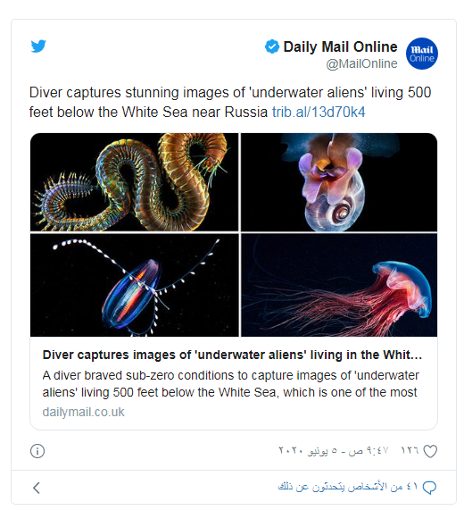 ويقضي ألكسندر سيمينوف، عالم الأحياء البحرية من العاصمة الروسية موسكو، 40 دقيقة فقط تحت المياه المتجمدة ليصل إلى عمق يبلغ نحو 60 مترا، ولكن مع عجائب التكنولوجيا الجديدة لديه القدرة على تصوير مخلوقات أعماق البحار.