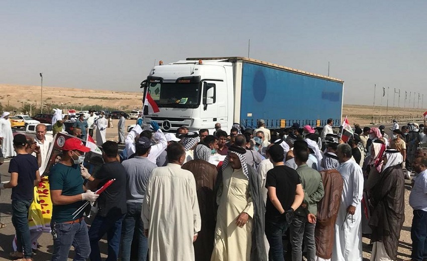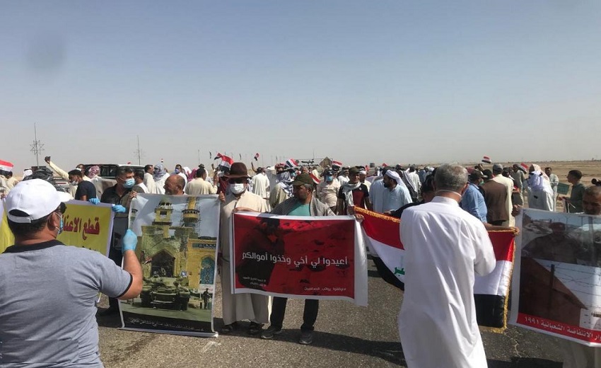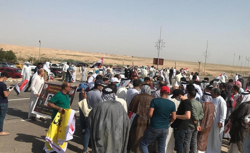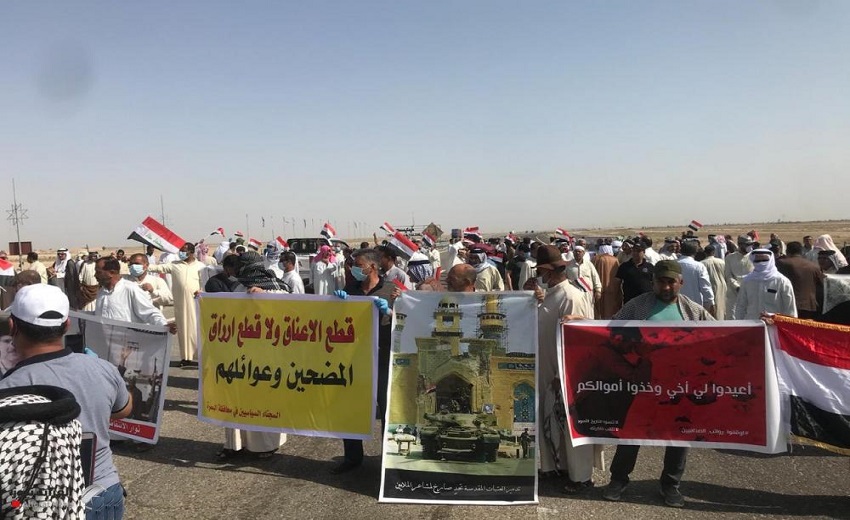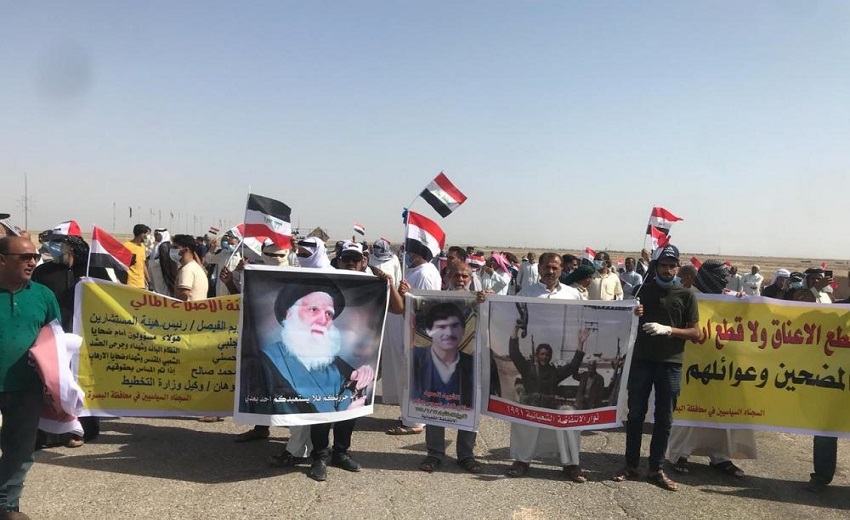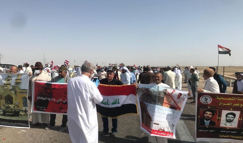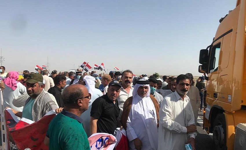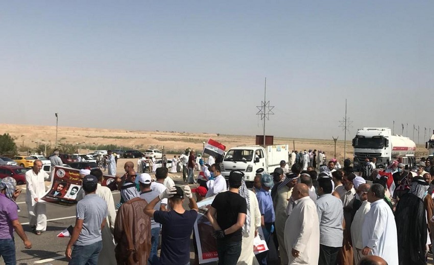 وقطع المحتجون الطريق الدولي الرابط بين البصرة وبغداد احتجاجاً على قطع رواتبهم بحسب ما جاء في مسودة قرار مجلس الوزراء الاخير.