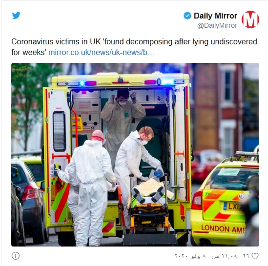 ووفقًا للإحصائيات، وقعت 700 حالة وفاة في المنزل في لندن، وتأكد الأطباء من أن فيروس كورونا كان هو السبب المباشر وراء الوفاة أو على الأقل ساهم في حدوثها.