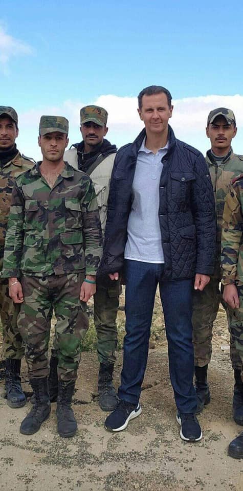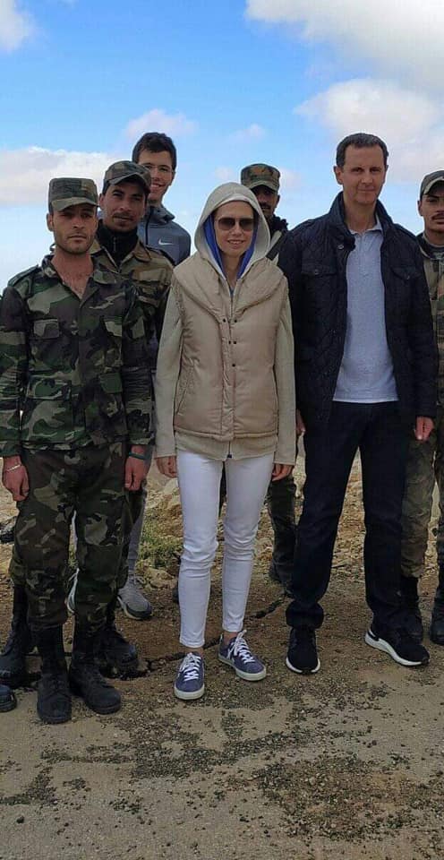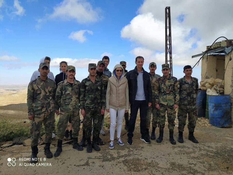 ويظهر الرئيس بشار الأسد والسيدة الأولى أسماء الأسد واولادهما في الصور، برفقة مجموعة من عناصر الجيش العربي السوري، فيما يبدو أنها زيارة عفوية لإحدى نقاط الجيش السوري لم يعرف بعد مكانها تماماً، بحسب ما رصدت وكالة أوقات الشام الإخبارية.