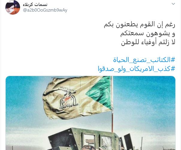 "نسمات كربلاء" شكر الحشد الشعبي وقال: "رغم إن القوم يطعنون بكم و يشوهون سمعتكم لا زلتم أوفياء للوطن"