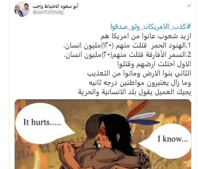 "أبو سعود الاحتياط واجب" ذكر بالمجازر والتجاوزات التي اركبها الامريكان بحق الهنود الحمر والسود الافارقة.