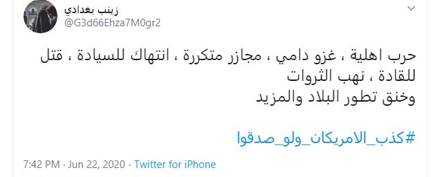 ورفض المغردون محاولة وسائل اعلام عربية تلميع صورة امريكا فاضحين ممارساتها في العراق ومستشهدين بالتظاهرات الموجودة حاليا في امريكا بسبب العنصرية التي يمارسها نظامها.