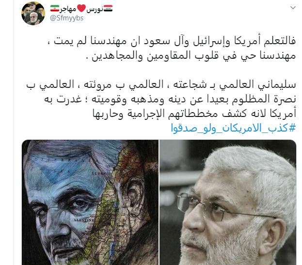 "نورس مهاجر" ذكر بجريمة امريكا في اغتيال القائدين الذين قهرا داعش في العراق وسوريا "ابو مهدي المهندس والحج قاسم سليماني":