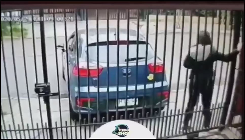 وتظهر في الفيديو السيدة وهي تغادر منزلها وتستعد لركوب سيارتها، قبل أن تقف سيارة فجأة ويهبط منها رجل مسلح.