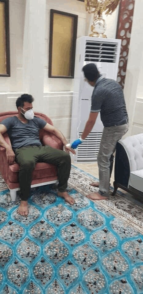 العراق _ الكوثر: نشر موقع السومرية نيوز، صوراً تظهر النجم الدولي السابق ومدرب منتخب الناشئين عماد محمد، وهو يخضع لإجراءات العلاج والحجر الصحي داخل منزله، بعد إصابته بفايروس كورونا.