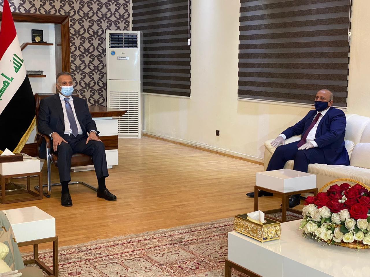 واجتمع الكاظمي بمحافظ كربلاء، نصيف الخطابي، بحضور قائد الشرطة والعمليات في المحافظة.