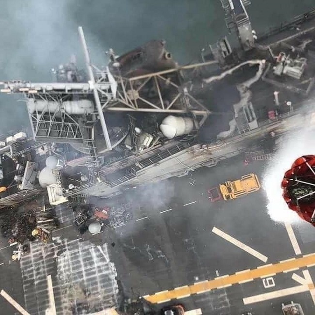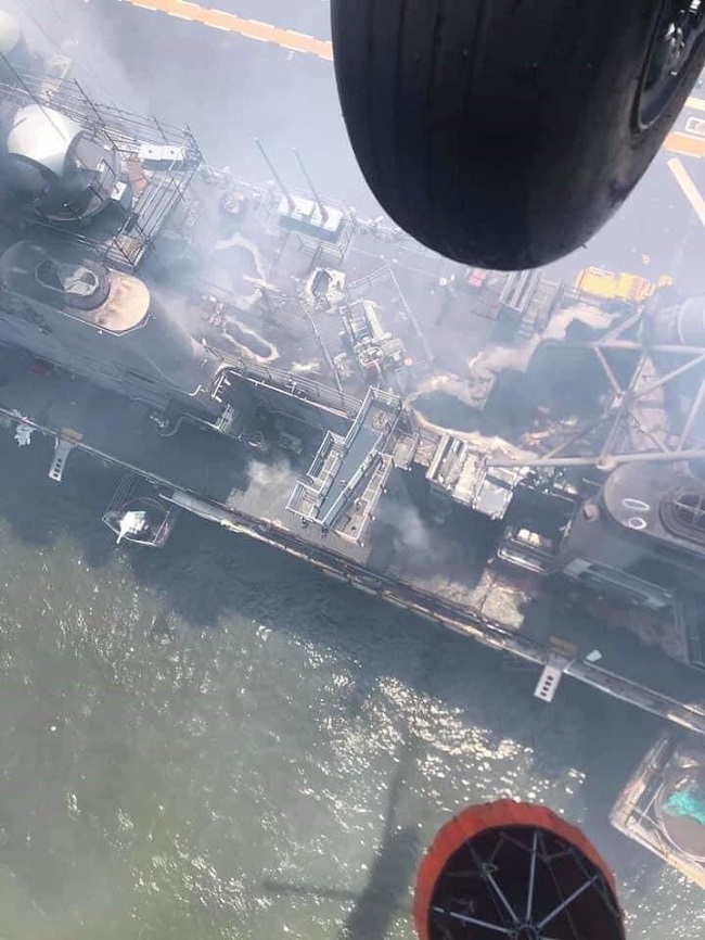 كما يمكن اَنْ يكونَ نتيجةَ هجومٍ داخلَ السفينة على خلفيةِ الاحتجاجات التي تشهدها الولاياتُ المتحدة ضد العنصرية.