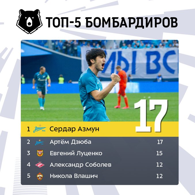 وبناء عليه فقد اعتبرت رابطة الدوري الروسي الممتاز لكرة القدم سردار آزمون هدافا للدوري لوحده فيما وضعت جويبا في المركز الثاني.