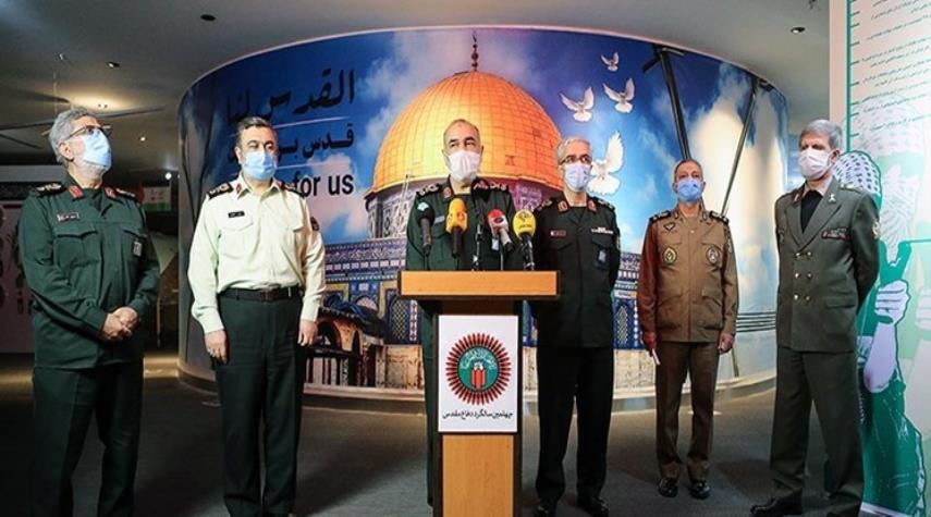 بدوره شدد وزير الدفاع واسناد القوات المسلحة الايرانية العميد امير حاتمي ان الاعداء كانت لهم مخططات كبيرة للمنطقة وكانوا يسعون لاستمرارية وفرض عدم الاستقرار فيها لعشرات بل لمئات السنين ولكن رجال المقاومة بقيادة الشهيد سليماني ودعم من القوات المسلحة الايرانية تصدوا لجبهة الكفر في المنطقة.