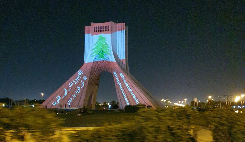 وتمت اضاءة برج "آزادي" بتقنية ثلاثية الابعاد بالوان علم لبنان من قبل "منظمة تجميل المدينة" التابعة لبلدية العاصمة طهران.