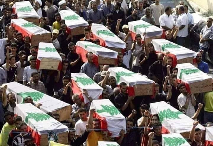 لكنّ الصورة لا تتعلق بانفجار مرفأ بيروت الذي وقع يوم الرابع من أغسطس/ آب، بل هي لحظات تشييع ضحايا قصف إسرائيلي على بلدة قانا جنوبي لبنان، التي قتل خلالها 28 مدنياً بينهم 16 طفلاً في قصف إسرائيلي على لبنان.