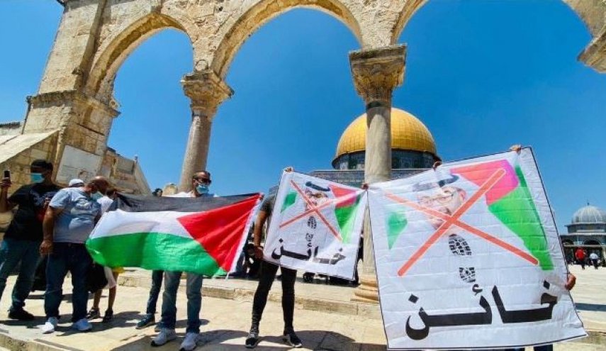 هذا وافاد مراسل قناة العالم الاخبارية بان مصلين فلسطينيين داسوا علم الامارات داخل المسجد الاقصى المبارك وصورة ولي عهد أبوظبي محمد بن زايد، واصفين اياه بالخائن احتجاجا على ما يعرف بالاتفاق بين الامارات وكيان الاحتلال.