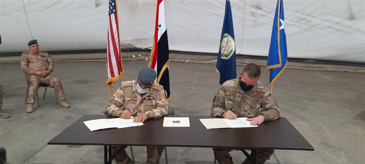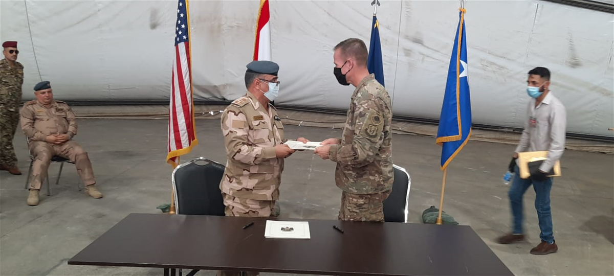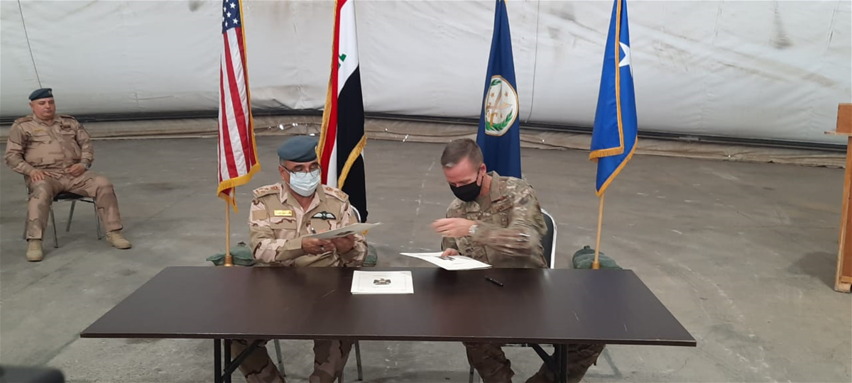 وقالت القيادة في بيان لها اليوم (23 آب 2020) "قد تم تسلیم الموقع المخصص من قوات التحالف الى الجانب العراقي بفضل النجاحات التي حققتھا قوات الأمن العراقیة في الحملة المستمرة لھزیمة داعش، مما سمح للتحالف بتحویل تركیزه ودوره في العراق".