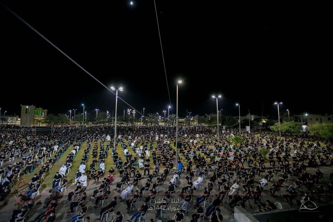 وشارك في مراسم الإحياء في القطيف مختلف أطياف مجتمعها وفئاته العمرية، واحتشد المعزون في شوارع وساحات العزاء الخارجية مراعين تدابير التباعد الاجتماعي، حيث انتشرت مواكب اللطم، فيما علت هتافات التلبية الحسينية في “ساحة القلعة”.