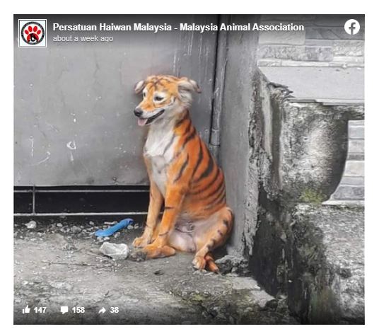 وشوهد الكلب يتجول لساعات طويلة في عدة أماكن في مدينة ماليزيا، بألوانه المميزة، ما تسبب بقلق بعض المواطنين وخوف الأهالي على أبنائهم.