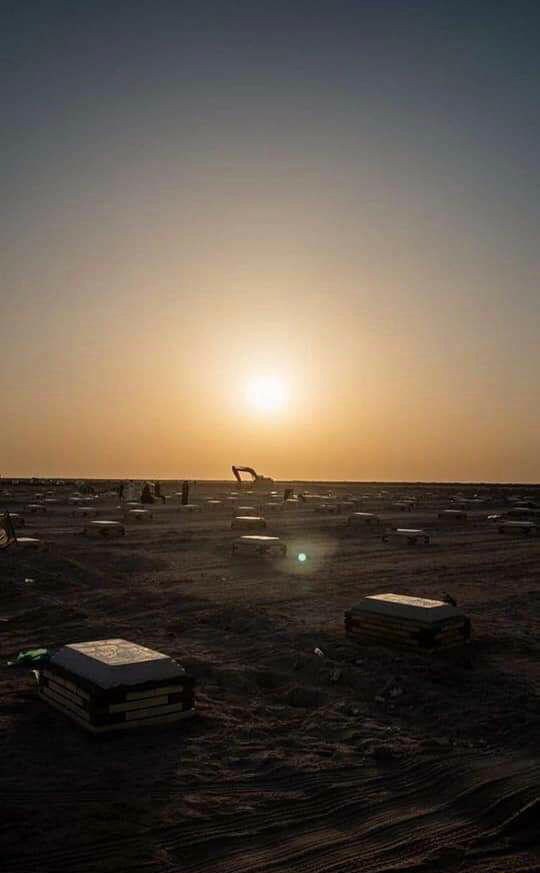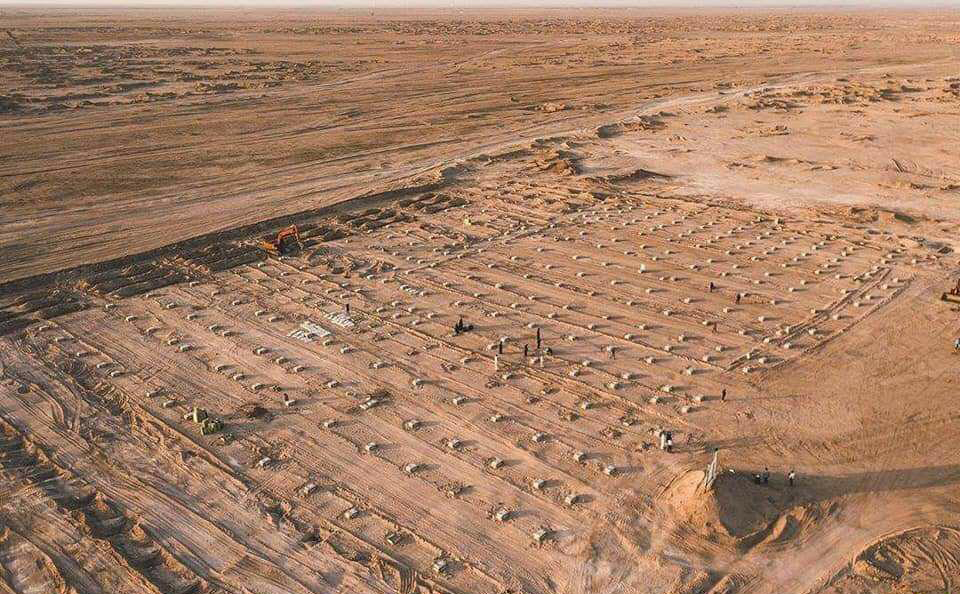 وأظهرت صور للمقبرة عمليات دفن المئات من ضحايا كورونا في العراق في منطقة صحراوية، وفي مسافات متباعدة بين قبر وآخر.