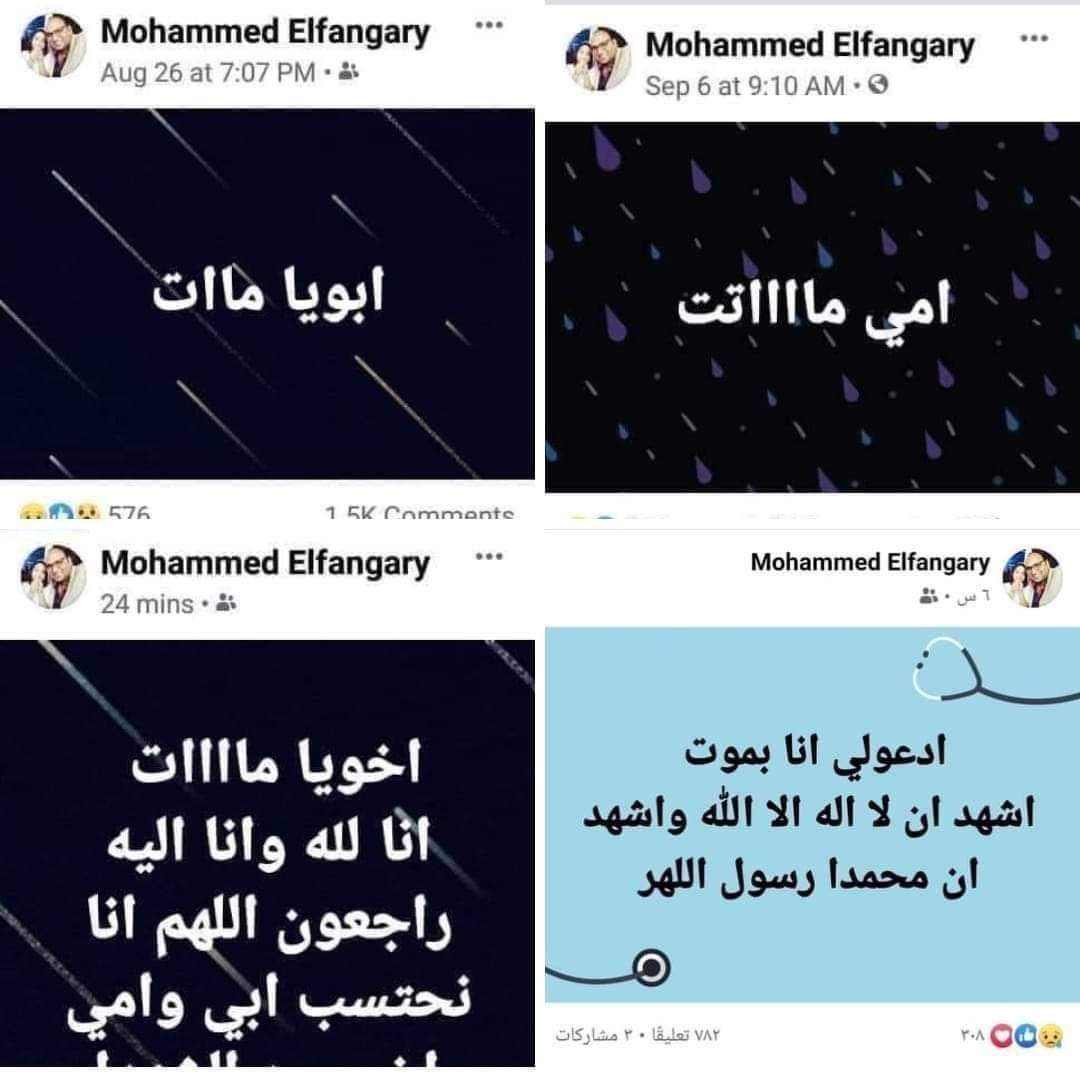 ولم تمر سوى بضع أيام حتى إعلان الفنجري إصابته هو الآخر بفيروس كورونا، وطلب من المتابعين الدعاء له، وخلال الساعات الماضية، أعلن أصدقاؤه وفاة الفنجري ليلحق بأمه وأبيه وأخيه، متأثر بإصابته بفيروس كورونا.