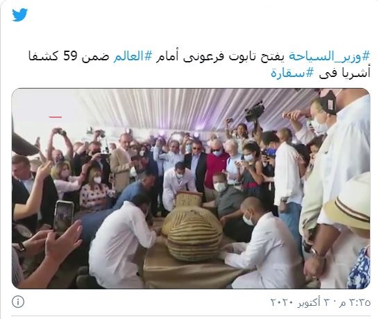 وقال العناني يوم السبت خلال مؤتمر صحفي: "نحضر اليوم الإعلان عن أكبر كشف أثري في 2020.. لنبلغ العالم بإعلان جزء جديد من حضارتنا".
