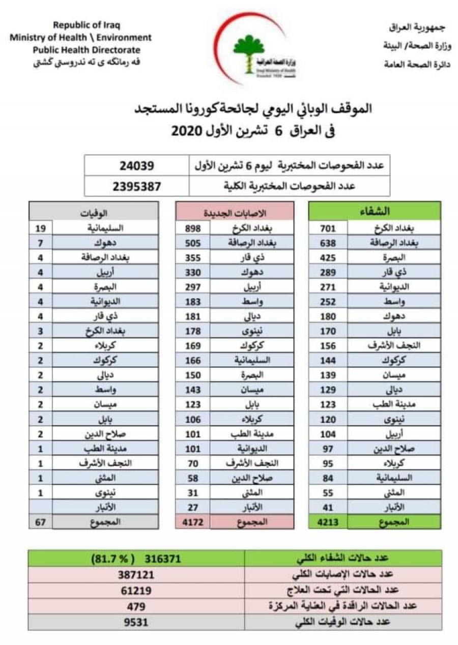 وسجل العراق 4172 إصابة جديدة ب
