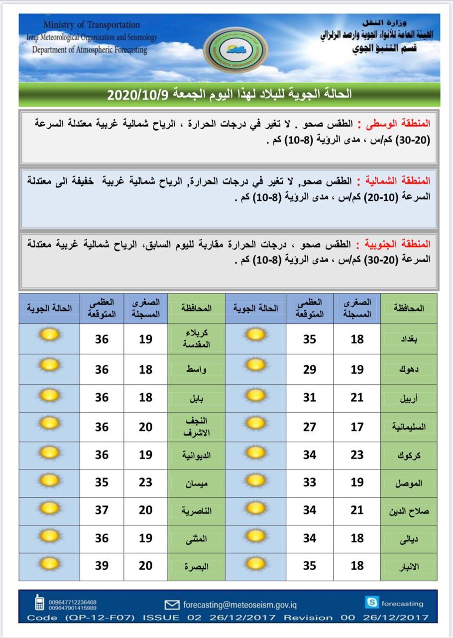 اليكم درجات الحرارة وفق الجدول الذي نشره
