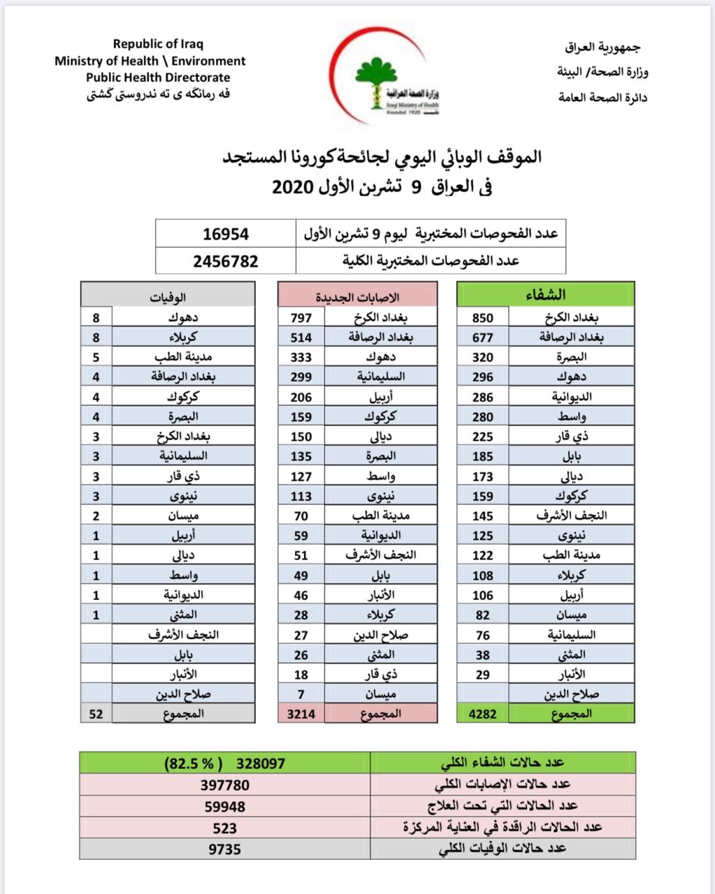 الموقف الوبائي.. حالات الشفاء تتجاوز الإصابات بكورونا في العراق