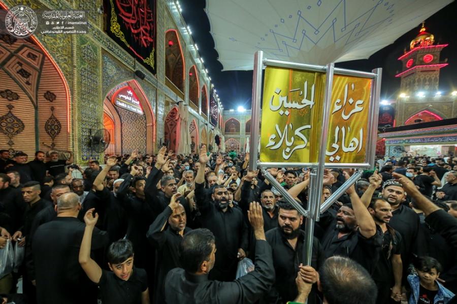 بالصور.. مواكب العزاء تحيي مراسيم وفاة النبي الأعظم (ص) عند مرقد أمير المؤمنين(ع)