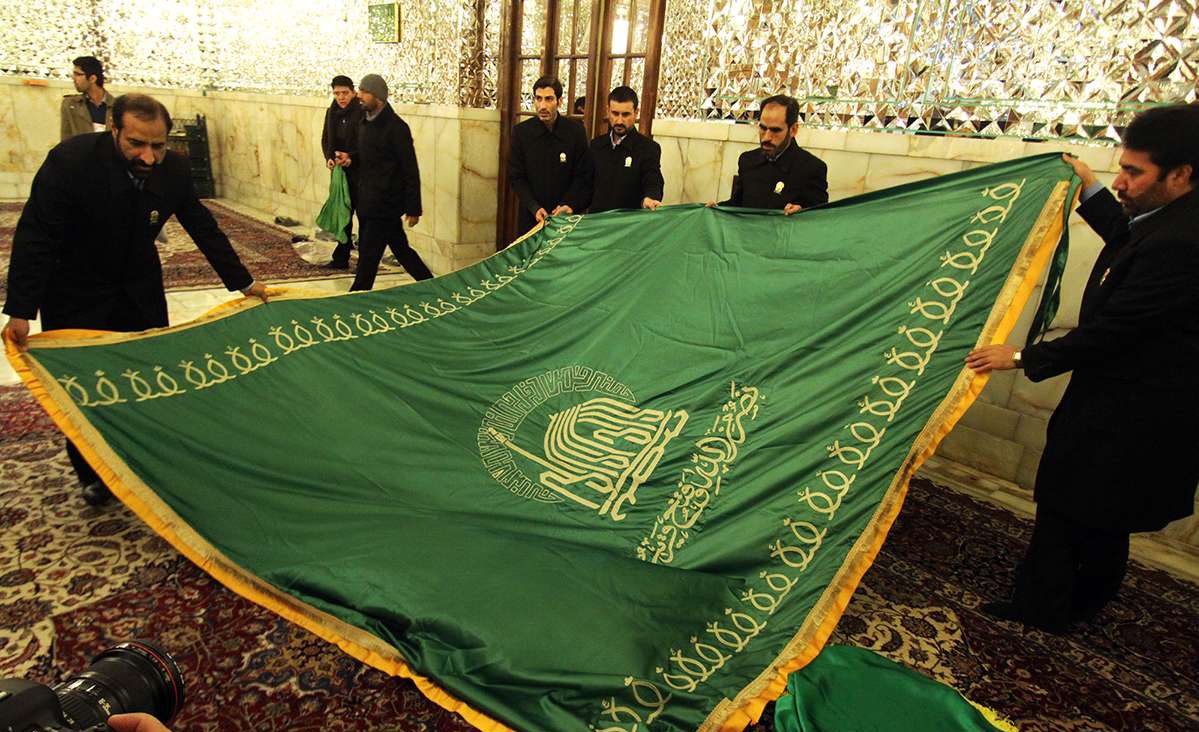 ايران-الكوثر: بالتزامن مع اليوم الثالث من شهر ربيع الأول تم استبدال راية الضريح المقدس للإمام الرضا (ع) وجميع مشاهد وأروقة الأماكن المقدسة بالعلم الأخضر.