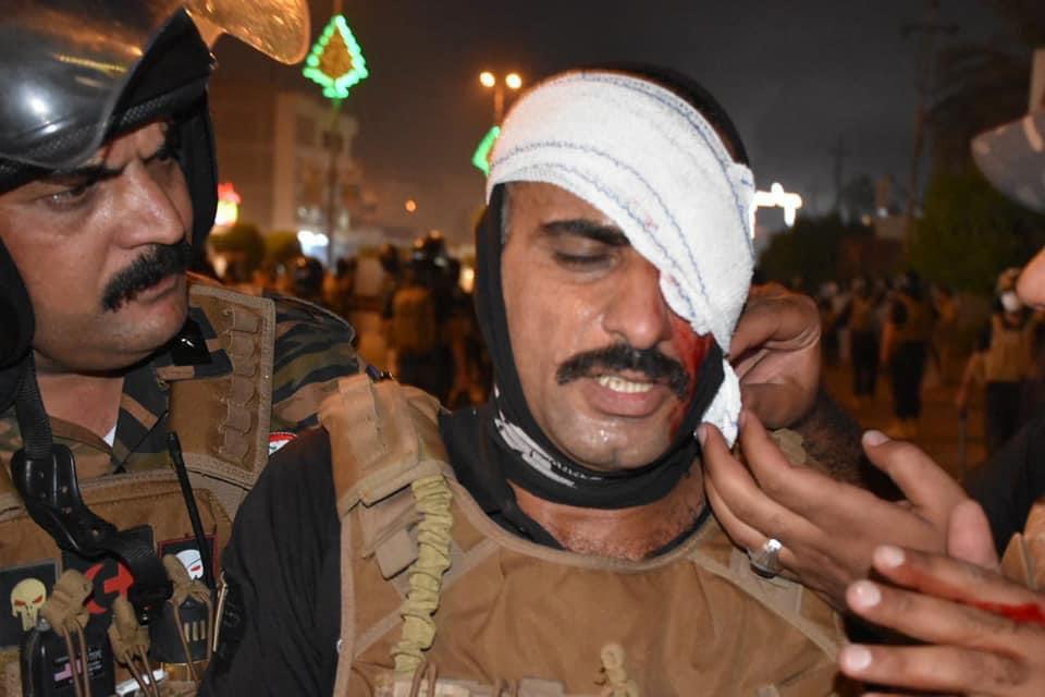 وقالت القيادة في بيان إن "التعليمات من القيادات الأمنية العليا كانت تدعو لعدم حمل اي قطعة سلاح وحمل العلم العراقي وتوفير الحماية التامة للمتظاهرين السلميين"، مبينة أنه "رغم إصرار القوات الأمنية على عدم الاحتكاك مع المتظاهرين لكن حدثت أعمال شغب من قبل المندسين وسط التظاهرات حيث قاموا بالاعتداء على الممتلكات العامة والخاصة وتطاولهم على رجال الداخلية اللذين تواجدوا في سبيل توفير الحماية لهم وللشعب عامة حيث تعرض عشرات المنتسبين في شرطة كربلاء وإثنين من الضباط الى إصابات خطيرة وبليغة نتيجة ضربهم بالحجارة والمولوتوف حتى تعرض أحد المنتسبين لفقع عينه".