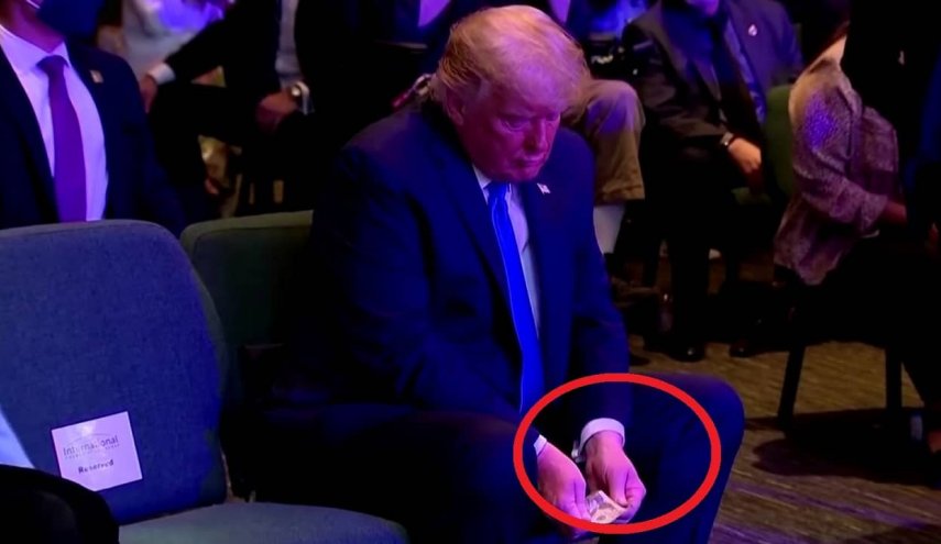 وأظهر مقطع فيديو الذي نشرته وكالة أنباء "رويترز" عبر قناتها الناطقة باللغة الإنجليزية في موقع "يوتيوب"، وتداولته عدد من وسائل الإعلام الأميركية، الرئيس الأميركي دونالد ترامب وهو يخرج من جيبه عدد من أوراق النقود فئة 20 دولاراً ، ثم احتفظ ببعضها في يده للتبرع بها إلى كنيسة، ثم أعاد الباقي إلى جيبه مرة أخرى، وأعاد ترامب العد مرتين للتأكد من مقدار الدولارات التي تبرع بها لعل ميزانيته لاتسمح بهذا القدر من التبرعت..