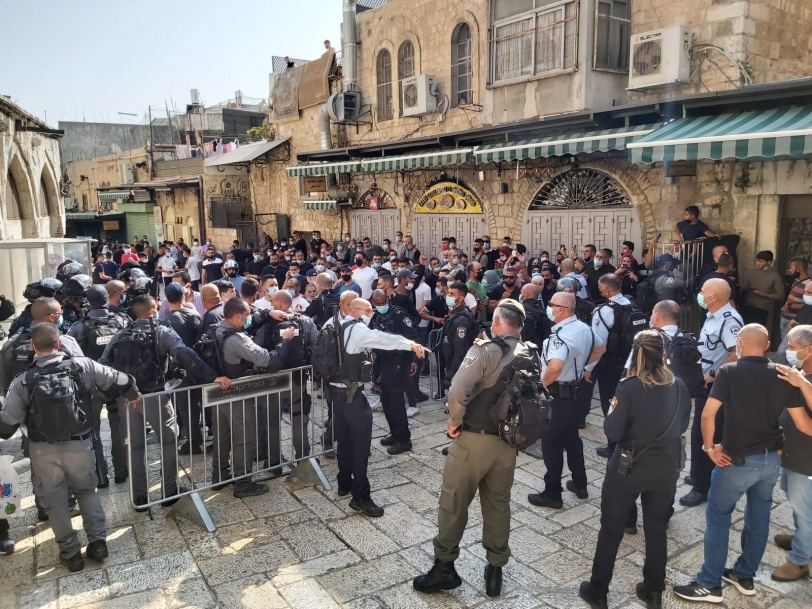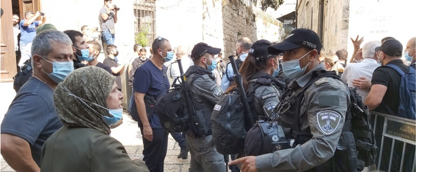 وقبل صلاة الجمعة نشرت شرطة الاحتلال حواجزها عند مداخل باب العامود وباب الساهرة – أبواب البلدة القديمة-، ومنعت أهالي الضفة الغربية الدخول والوصول إلى الأقصى، واعتدت عليهم بالدفع في منطقة باب العامود.