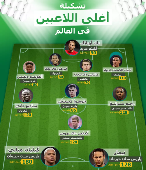 شاهد.. مفاجأة في تشكيلة أغلى لاعبي كرة القدم في العالم