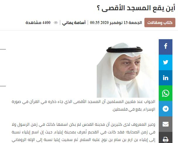 وأثار يماني جدلا واسعا لا سيما أنه ليس أول كاتب سعودي يحاول نفي قدسية المكان عن القدس المحتلة.