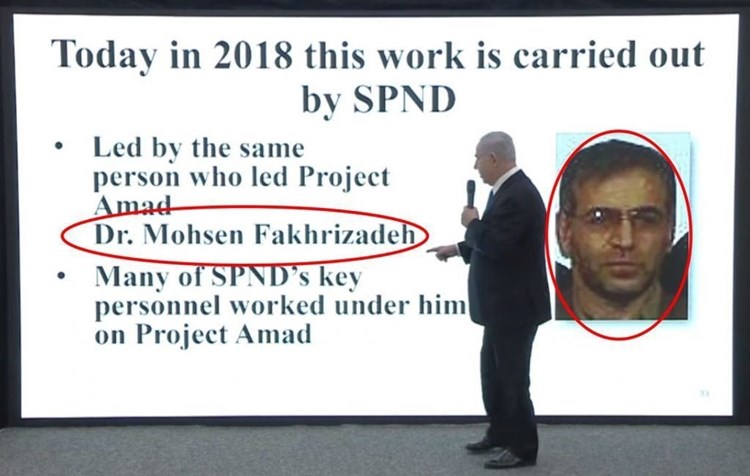 العالم الشهيد محسن فخري زاده هو العالم الإيراني الوحيد الذي تمّت تسميته مباشرة من قبل رئيس الوزراء الإسرائيلي بنيامين نتنياهو، خلال "عرض دعائي" عام 2018، زاعماً أنه "كان يعمل في برنامج أسلحة نووية".