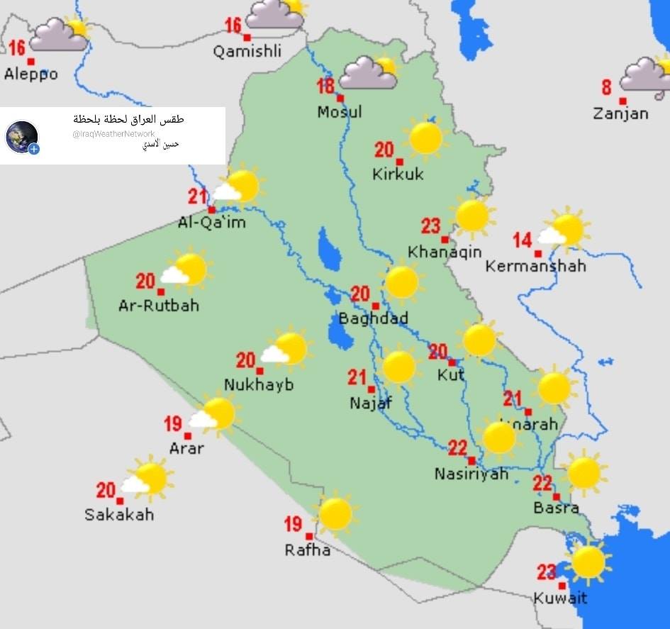 وذكر المتنبىء الجوي، حسين الأسدي، ، اليوم، 30 تشرين الثاني 2020، ان "تتبع حالة يشير إلى منخفض جوي جديد تبدأ مقدماته بغطاء من السحب مساء اليوم الاثنين ويوم الثلاثاء تبدأ معها فرص الأمطار على بادية المثنى ظهر غد الثلاثاء تقريبا".