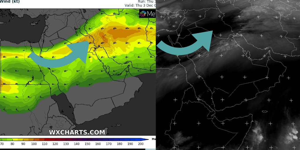 واوضح، ان التيار النفاث سينحدر نحو وسط الجزيرة العربية خلال اليومين المقبلين مما يرفع نسب الهطول في وسط وجنوب البلاد يومي السبت والاحد.