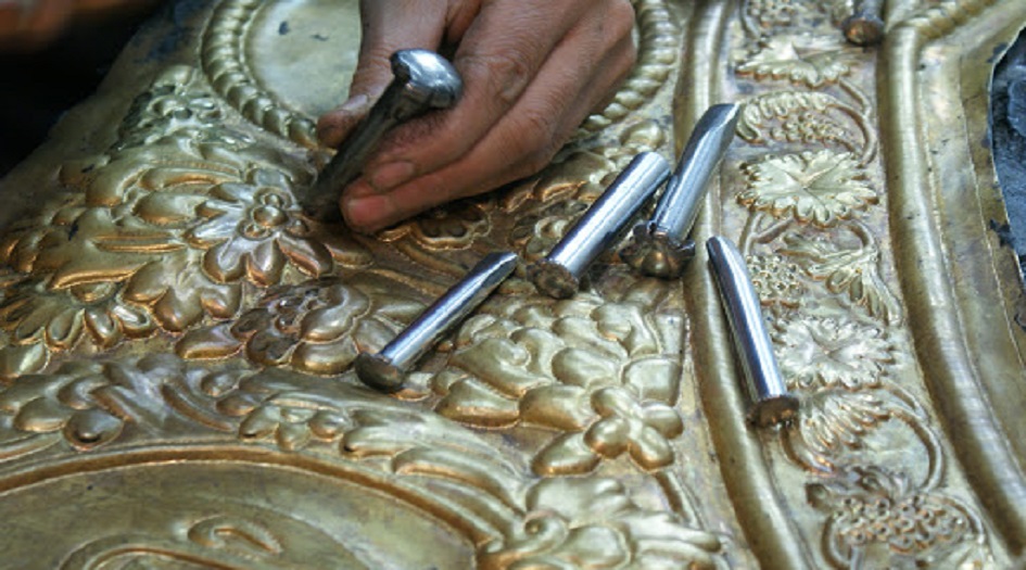 النقش هو التزيين والنحت على الأشياء المعدنية، وخاصة النحاس والذهب والفضة، أو بعبارة أخرى، إنشاء خطوط وأنماط بقلم ومطرقة على أشياء معدنية.