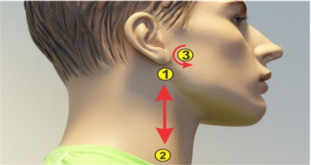 تبدأ هذه النقاط من خلف شحمة الأذن حتى منتصف عظمة الترقوة . لا تقوم بتدليك أو الضغط على هذه النقاط ولكن المرور بلطف حتة تلامس أصابعك على هذا الخط من الأسفل نحو الأعلى والقيام بذلك حوالي 10 مرات لكل جانب ثم 10 مرات أخرى للجانب الأخر .