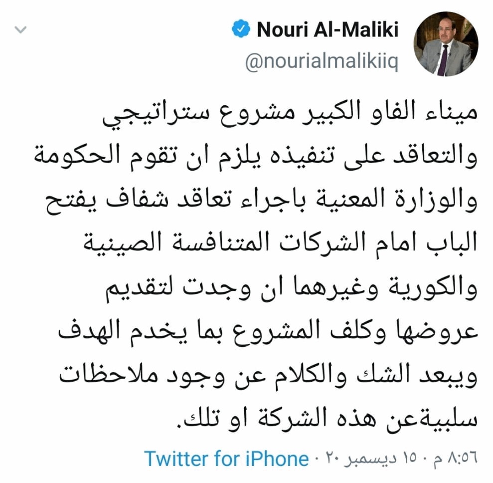 وقد أعلنت الشركة العامة للموانئ العراقية، يوم الاثنين، استبعاد الشركة الصينية من المنافسة واختيار شركة دايو الكورية بعقد تنفيذ ميناء الفاو الكبير.