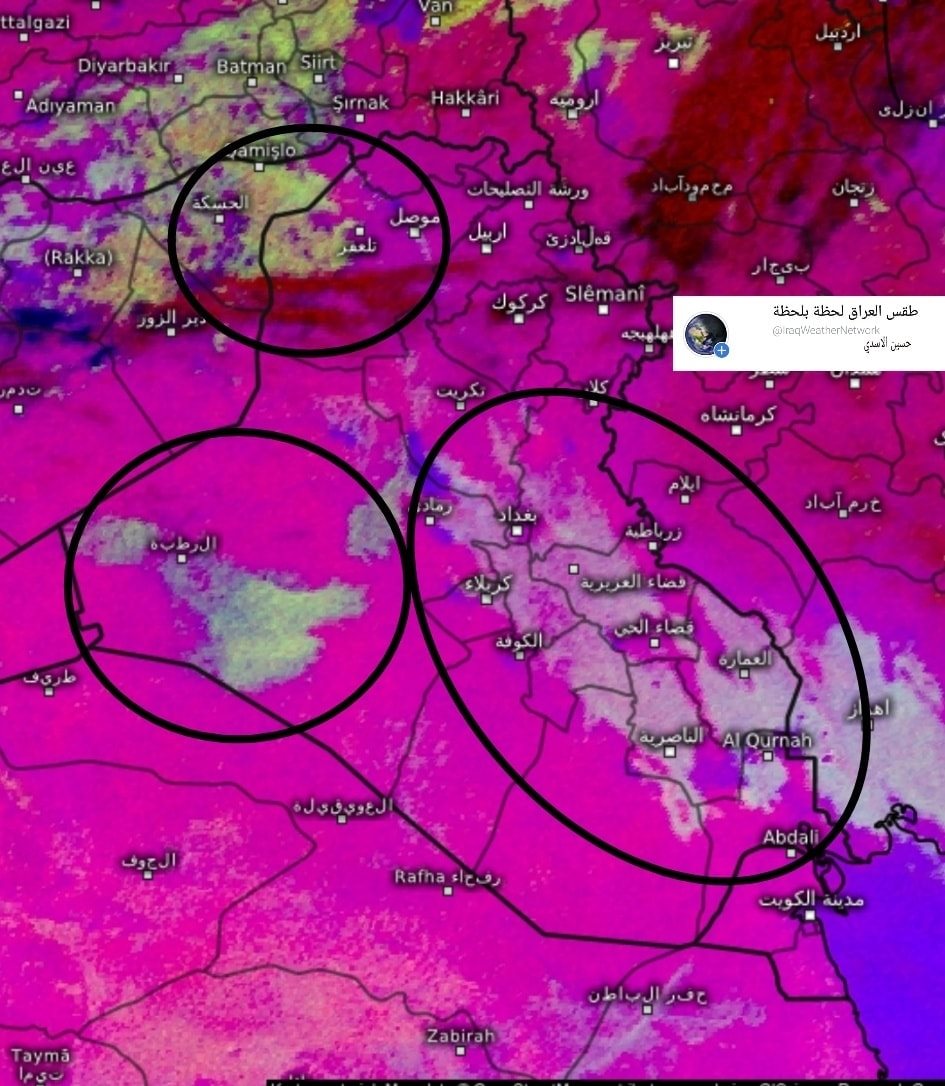 وحذر، من تشكل الضباب خلال الليلة وحتى صباح الغد خصوصا الموصل وصلاح الدين وأجزاء من كركوك وأربيل والعاصمة بغداد بابل كربلاء والنجف وبادية المثنى وربما يشمل مناطق أخرى من جنوب البلاد يرجى الانتباه الشديد وإتباع الإرشادات والسلامة ألمرورية المعروفة من تخفيف السرعة وترك مسافة كافية بين المركبات وتشغيل المصابيح ونتمنى السلامة للجميع
