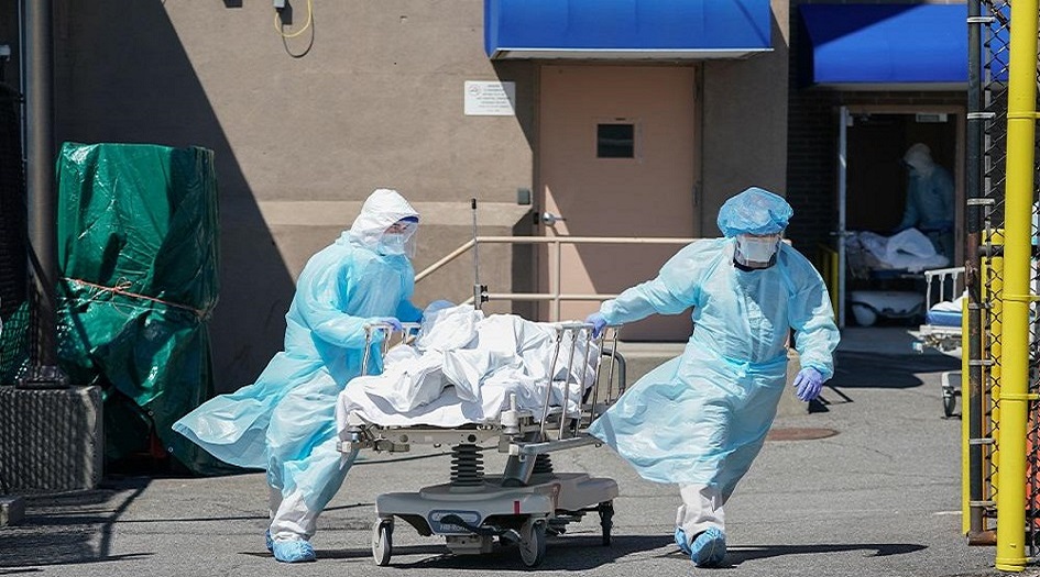 الحدث الأهم على الإطلاق هذا العام، جائحة أدت إلى إصابة ومقتل الملايين حول العالم، خاصة الولايات المتحدة. في الصورة، مسعفون في مستشفى ويكوف بمنطقة بروكلين في نيويورك ينقلون جثامين مرضى قضوا جراء المرض إلى شاحنة تبريد تعمل مشرحة مؤقتة.