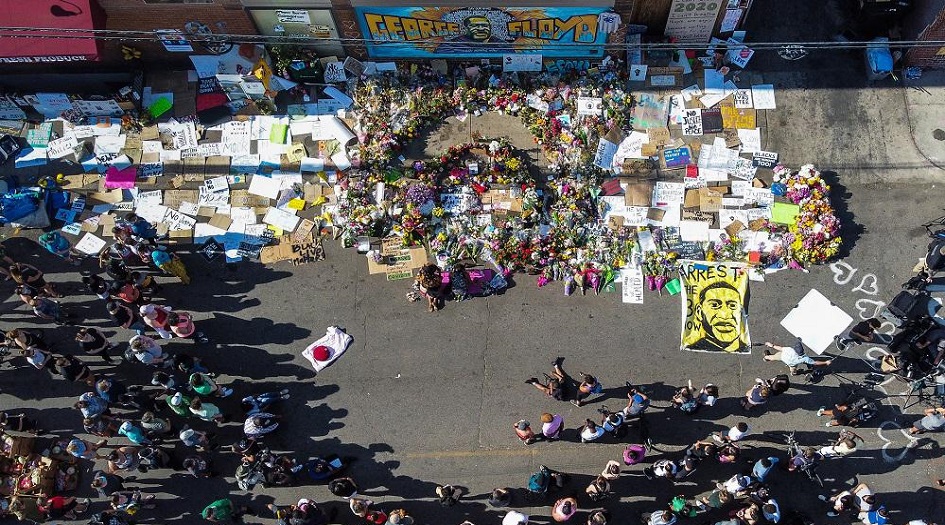 مقتل الأميركي الأسود جورج فلويد، على يد شرطي أبيض، تسبب في سلسلة من الأحداث سلطت الضوء على التمييز العرقي في الولايات المتحدة. في الصورة، حفل تأبين لفلويد في مدينة مينيابوليس حيث لفظ فلويد أنفاسه الأخيرة يوم 25 مايو آيار