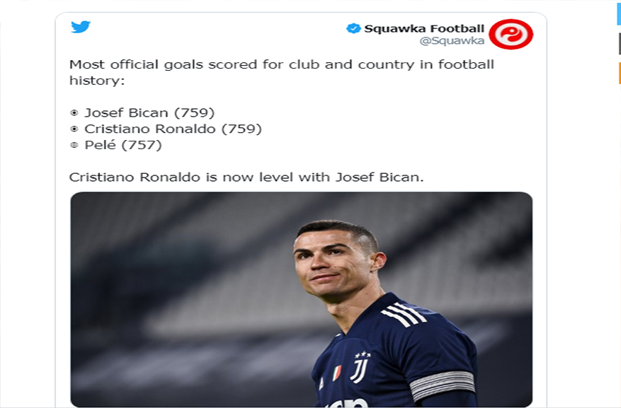 هدف رونالدو، لم يكن كعادة أهدافه، ولكنه عادل به رقم النمساوي جوزيف بيكان، والذي سجل 759 هدفًا كأكثر اللاعبين تسجيلا للأهداف الرسمية عبر التاريخ.
