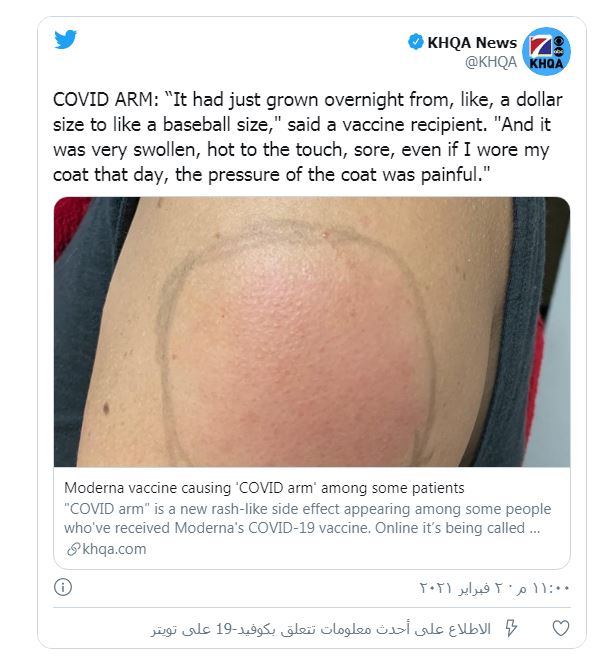 ووفقا لوسائل إعلام أمريكية، تعرض بعض المرضى الذين تم تطعيمهم بلقاح شركة "موديرنا" الأمريكية، لطفح جلدي على أذرعهم، ظهر في غضون 7 - 10 أيام من تلقي اللقاح.