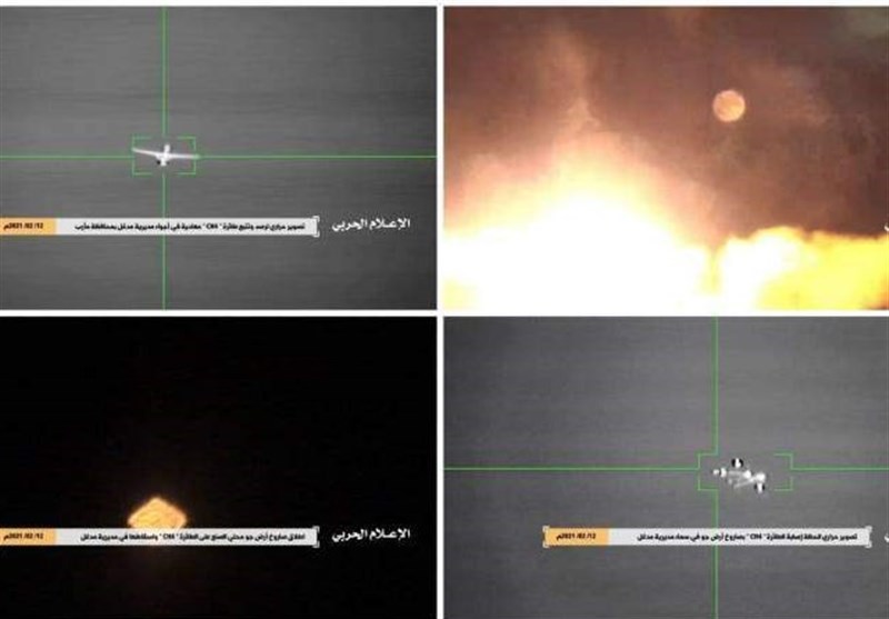 الإعلام الحربي اليمني يوزع مشاهد لعملية إسقاط طائرة CH4 المعادية في مارب