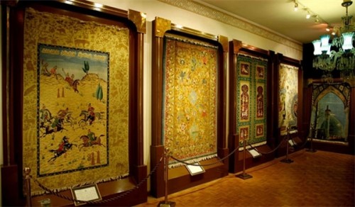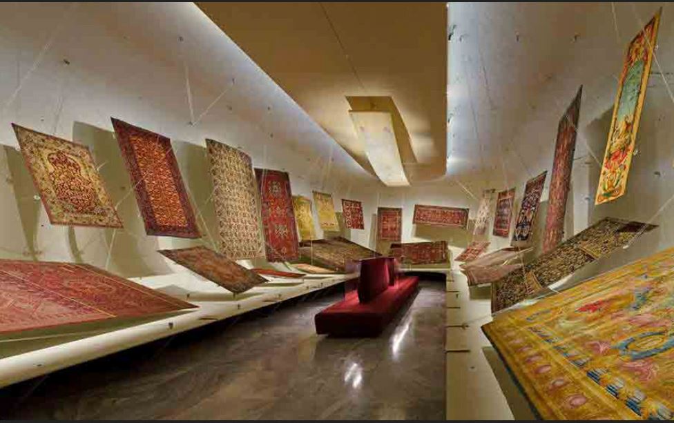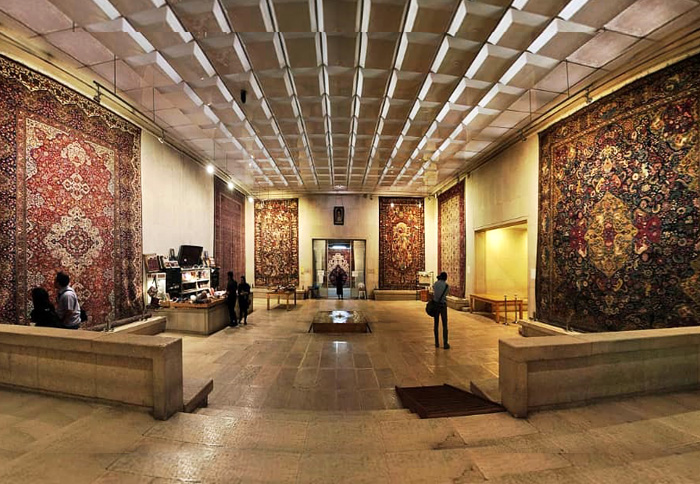 كما يضم هذا المتحف أنواعاً مختلفة من السجاد اليدوي والبساط حسب جودتها وقدمها إضافةً إلى الميزات التي يحظى بها السجاد الإيراني من حيث الرسم والتصميم والنقش والحياكة والتنوع والانتشار الجغرافي لحياكة السجاد. ومبنى المتحف له هندسة معمارية أنيقة ورائعة وتشبه واجهته الخارجية إلى حد كبير آلة حياكة السجاد اليدوية. وله قاعتان بمساحة 3400 متر مربع، يُعرَض فيهما السجادات والبسط التي نسجت يدوياً وتم تخصيص الطابق الأرضي للعرض الدائم لـ 150 قطعة من السجاد والبسط القيمة والثمينة وخصص الطابق الثاني للوحات من روائع السجاد الإيراني ومكتبة لكتب ومجلات ودراسات عن فن السجاد الفارسي والسجاد الشرقي بشكل عام وفيها (7000) كتاب.