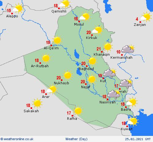وأشار إلى ان "درجات الحرارة تنخفض هذا اليوم في كافة مناطق العراق بسبب الرياح الشمالية الصادرة من المرتفع والغيوم التي تغطي جنوب البلاد، والتي تجعل الرياح المارة باردة ويتوقع استمرار الاجواء الباردة لليومين المقبلين فيما يستمر نشاط الرياح الشمالية الغربية".