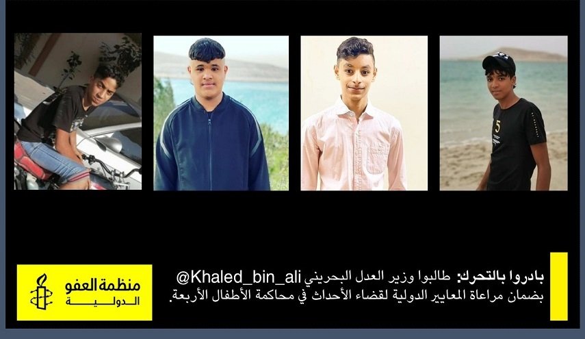 ودانت المنظمة في بيان لها عبر موقعها الإلكتروني، إجراءات محاكمة الأطفال «حسين عبد الرسول، فارس حسين، محمد جعفر، سيد حسن أمين»، أمام المحكمة الجنائية العليا واعتبارهم بالغين، بما يتعارض مع قوانين الطفل والمعايير الدولية التي صادقت عليها حكومة البحرين من قبل.